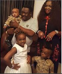 NOLLYWOOD COMIC ACTOR JOHN OKAFOR “MR IBU” POSES FOR THE CAMERA WITH HIS FAMILY